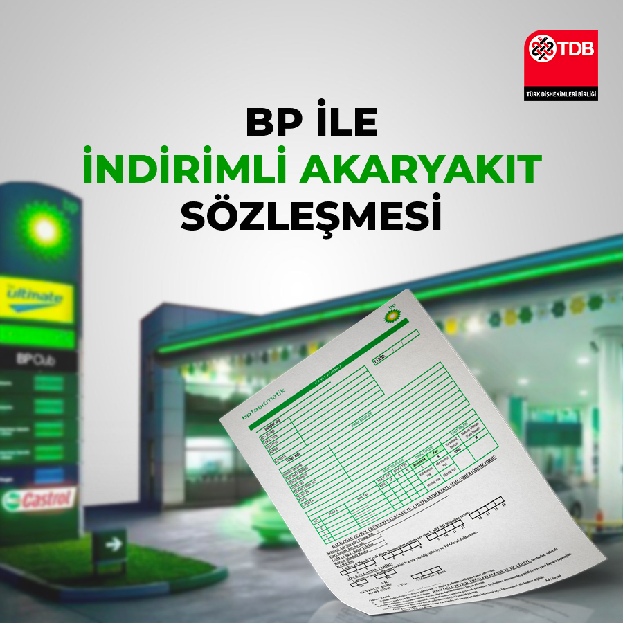 Birliğimiz ve Haliloğlu Petrol Ürünleri Paz. San. ve Tic. Ltd. Şti arasında BP akaryakıt ürünleri protokolü imzalanarak Türk Dişhekimleri Birliği’ne üye dişhekimleri ve aile fertlerinin %4,5 iskontolu indirimle benzin ve motorin almaları sağlanmıştır.