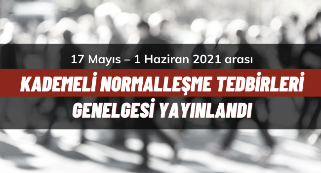 COVID-19 salgınıyla mücadele tedbirleri kapsamında T.C İçişleri Bakanlığı tarafından 17 Mayıs 2021 Pazartesi günü saat 05.00’ten 1 Haziran 2021 Salı günü saat 05.00’e kadar uygulanacak olan Kademeli Normalleşme Tedbirleri Genelgesi yayınlandı.