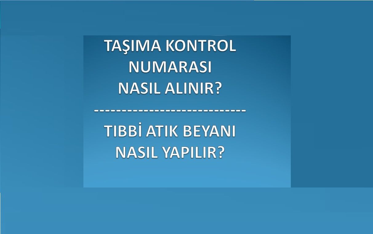 TIBBİ ATIK TAŞIMA KONTROL NUMARASI VE BEYAN İŞLEMLERİ HK.